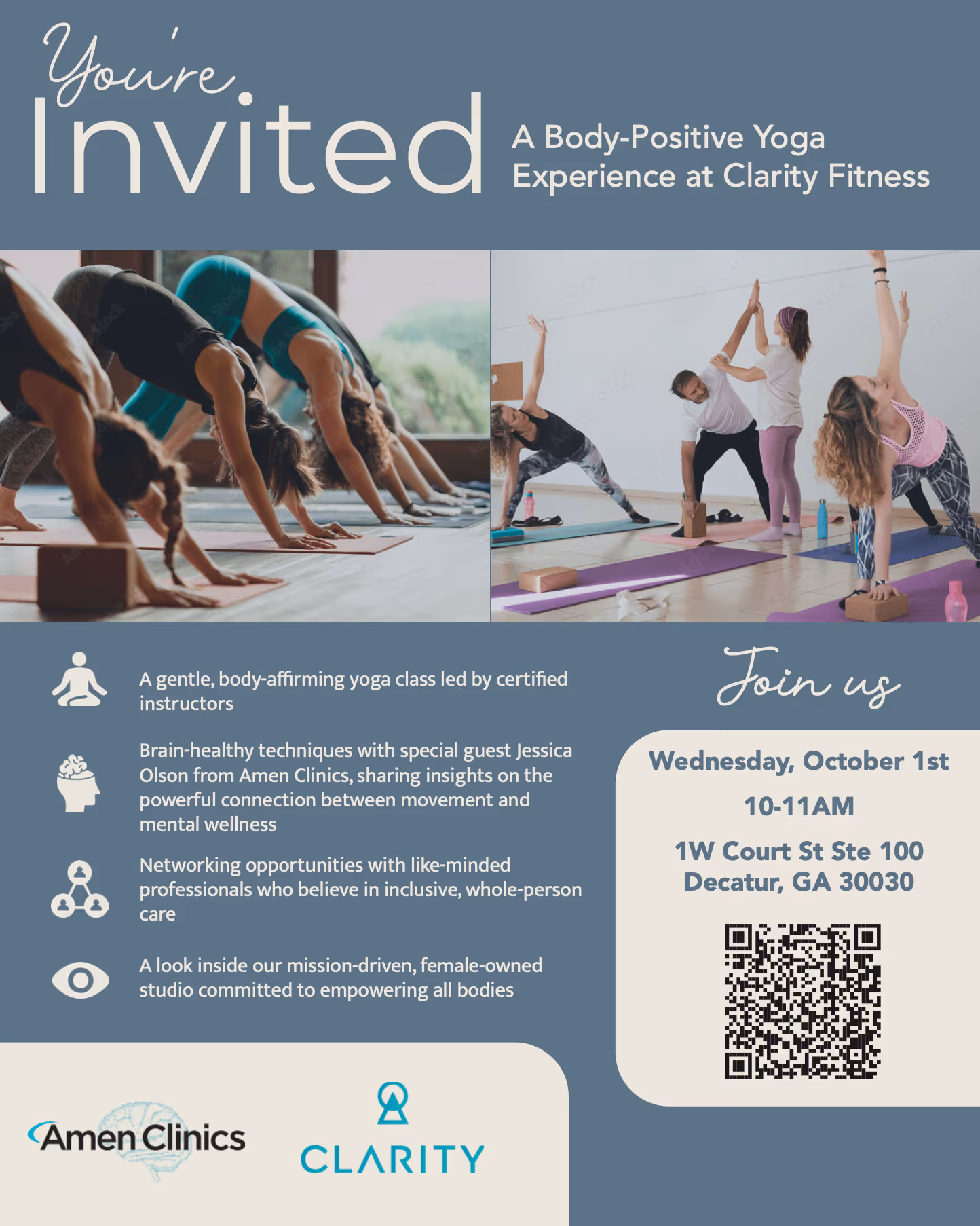 Step into a space where movement meets mindfulness and every body is welcome. Join us to experience a rejuvenating yoga session designed to nourish both the body and brain.